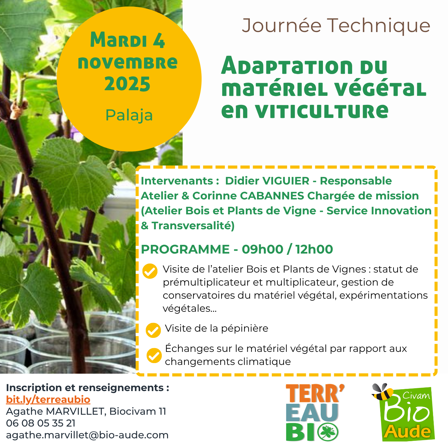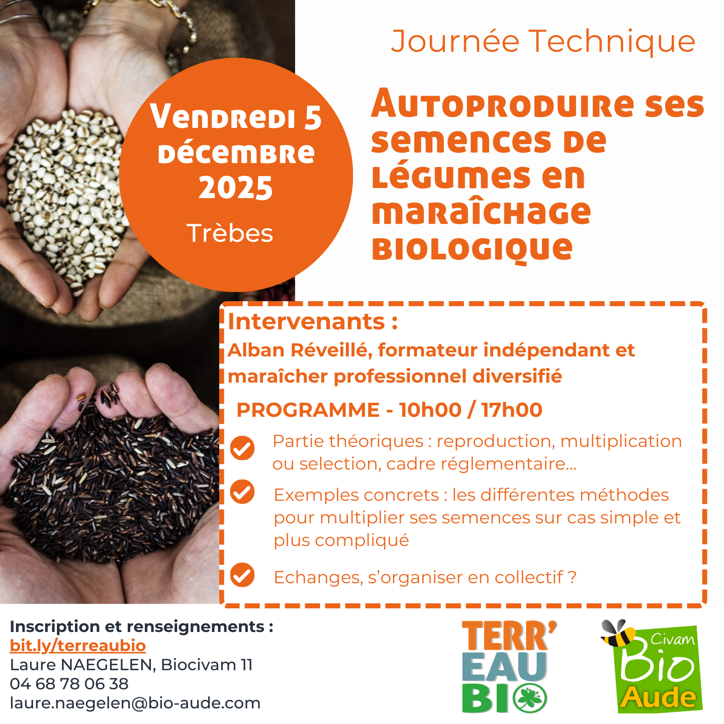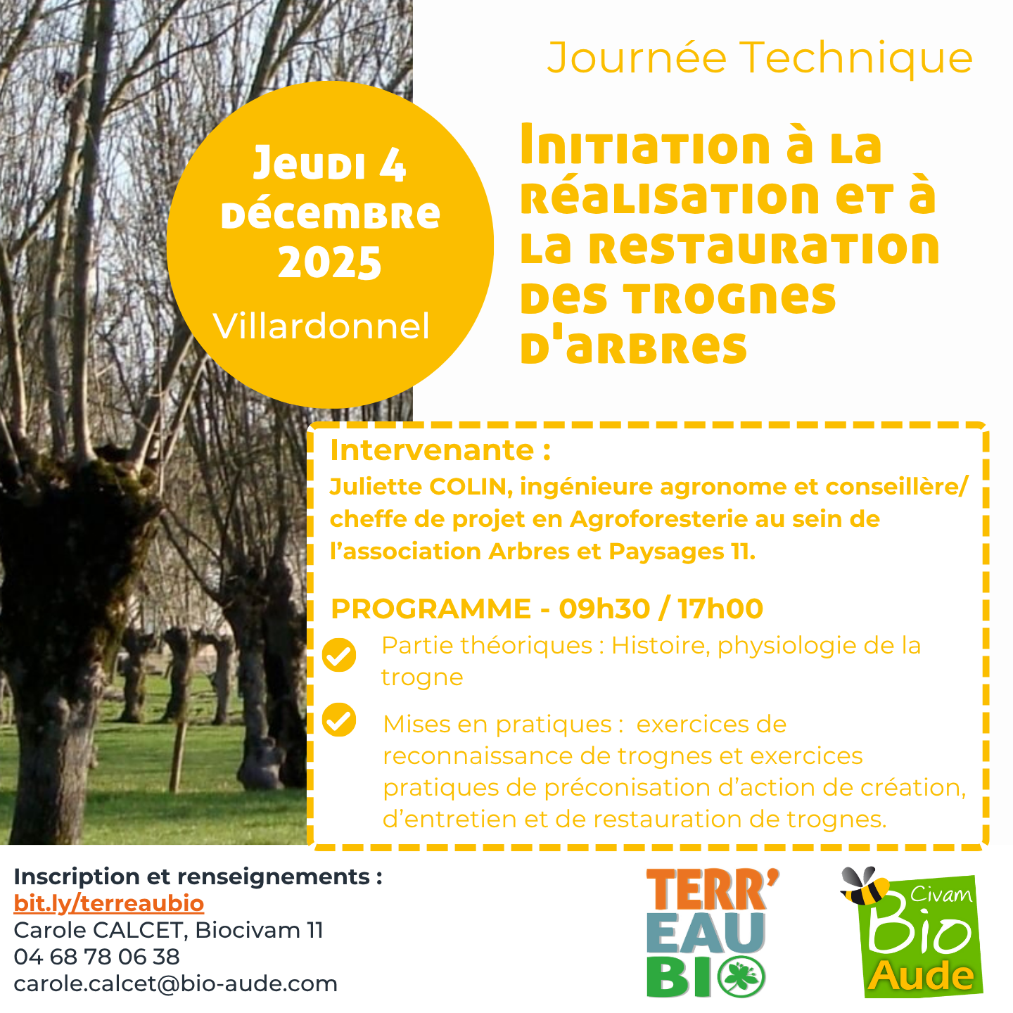 INSCRIPTION OBLIGATOIRE : auprès de Axel Wurtz, par email axel.wurtz@bio-aude.com ou par téléphone au 06 31 06 71 27